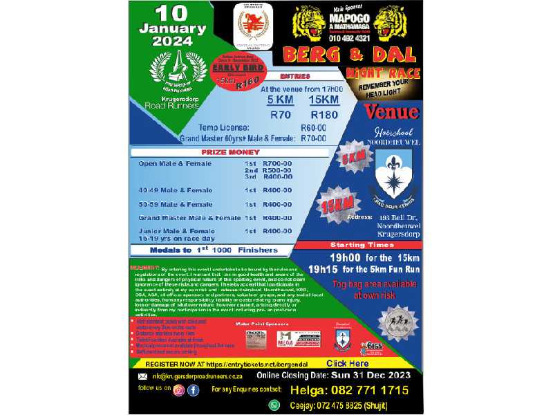 16 January 2026 - 6:00pm (10km) and 6:15pm (5km)
